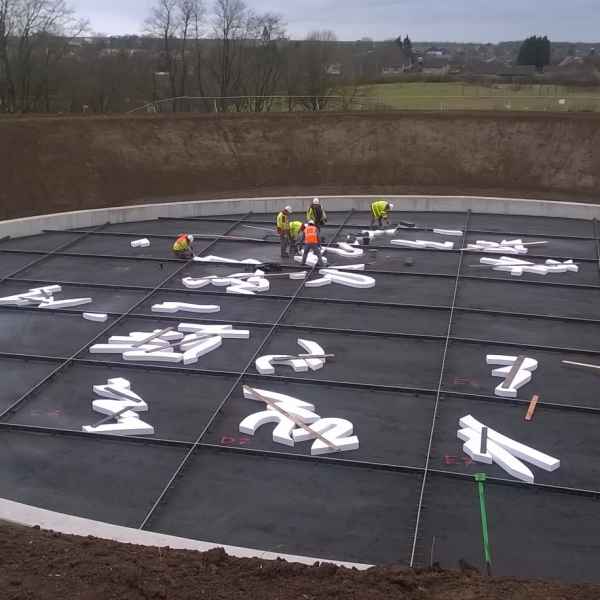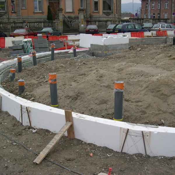 Colmar Découpes réalise des réservations pour des murettes-guide pour pieux sécants, grâce à une découpe du polystyrène expansé réalisée selon le tracé des plans d’architecte. L’entreprise fournit à ses clients un plan de calepinage précis pour en faciliter la pose. Elle propose également dans sa gamme de produits des isolants en élastomère à cellules souples pour le recépage des armatures en acier en attente ainsi que les gainages.
