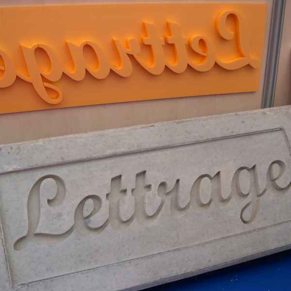 Afin de permettre à ses clients de réaliser des engravures sur une surface béton, d’y intégrer un motif, un lettrage, une enseigne ou un logo, Colmar Découpes fabrique des matrices en polystyrène uniques pour chaque projet. Les gabarits sont réalisés selon les besoins de chaque entreprise : la profondeur de l’engravure, les polices de caractères utilisées, la hauteur de texte, la dimension sont au choix du client.