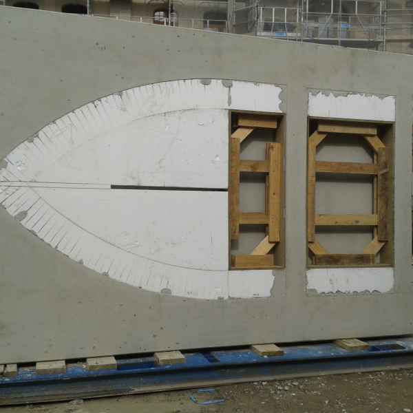Notre prestation dans ce domaine consiste à découper selon un fichier vectoriel, le motif souhaité à l ’échelle 1/1. Celui ci sera mis en œuvre sur chantier ou en usine pour les préfabriquants , par collage sur le coffrage (table , banche) de l’élément à réaliser. Il sera ensuite détruit, le vide créé formera l engravure .