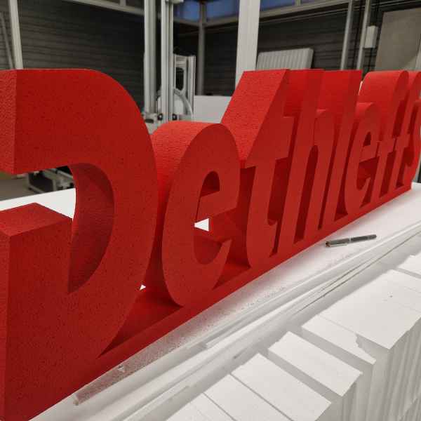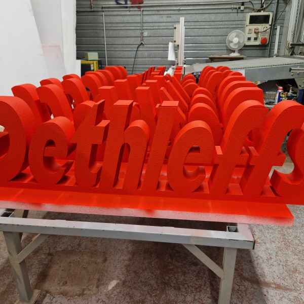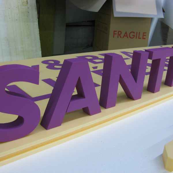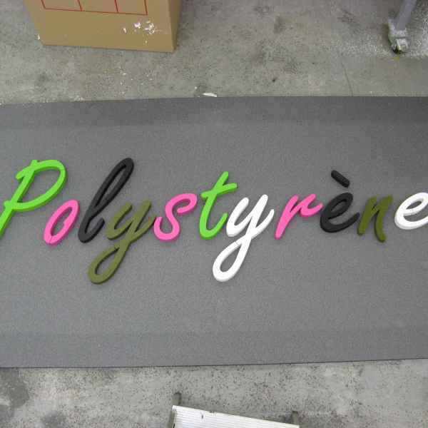 réalisations sur-mesure, à partir d’un plan, d’outils de PLV tels que les logos, les lettrages bruts ou peints, de petite ou de très grande taille, de toute épaisseur, en exemplaire unique ou en série, pour de l'intérieur ou de l'extérieur, en polystyrène expansé ou extrudé, à suspendre, à coller ou à déposer…